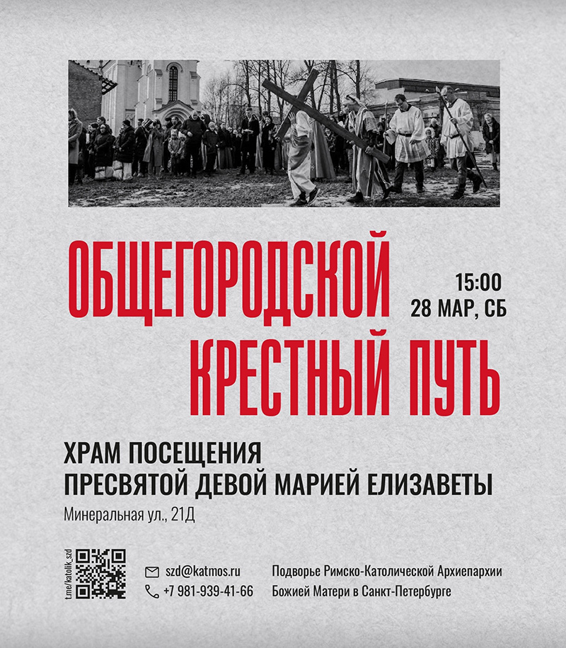 В Санкт-Петербурге общегородской Крестный Путь состоится в субботу, 28 марта в 15:00 в храме Посещения Пресвятой Девой Марией Елизаветы.