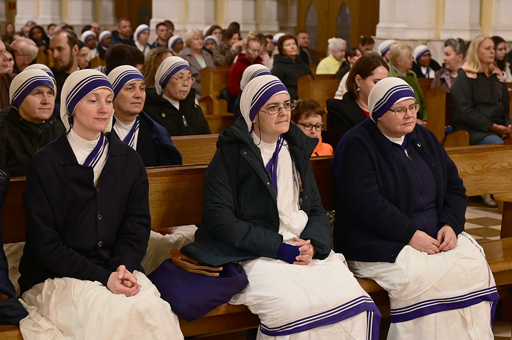 «Мои дорогие сестры, — сказал апостольский нунций обращаясь к сестрам Матери Терезы, участвующим в богослужении, — при каждой встрече с вами я видел в вашей радости светящийся образ Евангелия, проживаемого в конкретных делах: там, где есть страдание, одиночество, люди, выброшенные из общества, вы приносите присутствие Христа, узнавая в каждом человеке Его Лик. В мире, зачастую отмеченном безразличием, ваше свидетельство есть мощное требование признавать человеческое достоинство каждого мужчины и каждой женщины, признавать в них живой образ Божий, каждым своим действием вы сразу же отвечаете на возглас «Я жажду» и напояете своей самоотдачей жажду любви Божьей в человечестве. Вам хорошо известно, что современный мир все еще испытывает жажду в бескорыстной любви, простых делах и сердцах, отдающих себя безраздельно. Тем более сегодняшнее празднование означает для нас открыться с новой верой в будущее, и оно выражает наше искреннее желание, чтобы вы продолжали быть знаком Божьей доброты, живым таинством Его Милосердия!»