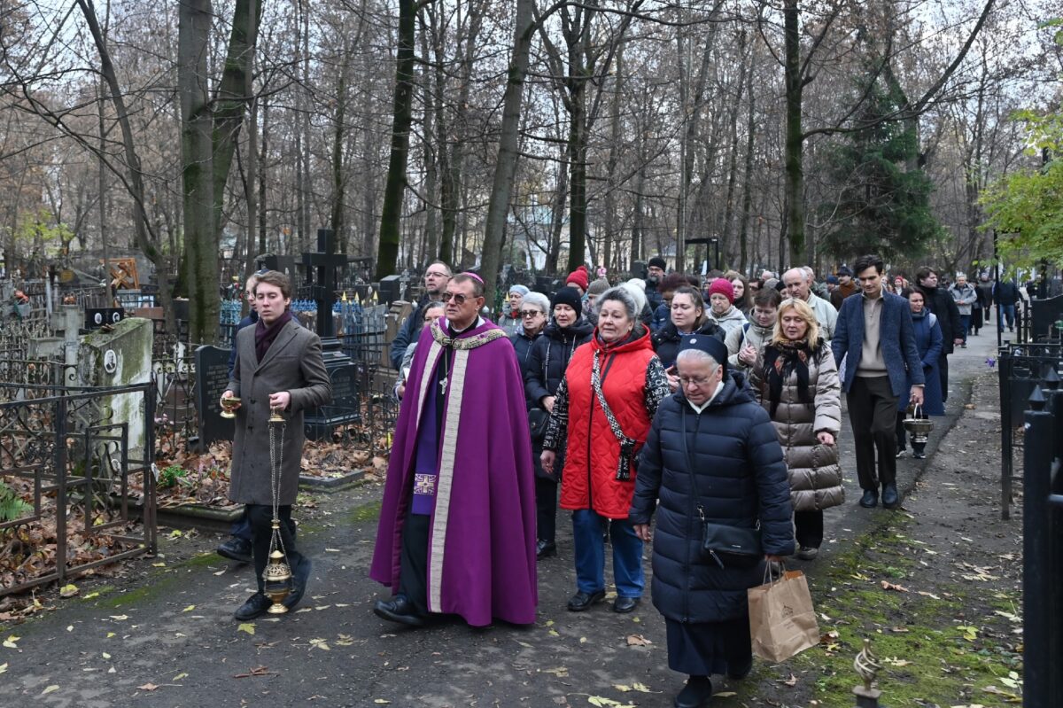 Благословение Архиепископа и молитва “Ангел Господень” завершили Святую Мессу, после чего верующие отправились на Ваганьковское кладбище, где совершили крестный ход поминовения усопших, который также возглавил владыка Павел.