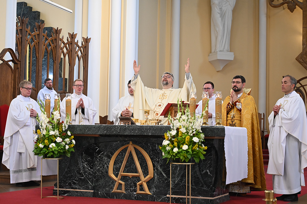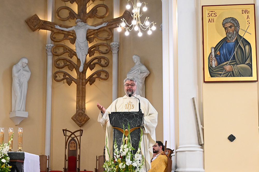Размышляя над вторым чтением из Послания апостола Павла к Коринфянам (1Кор 11, 23 – 26), генеральный викарий обратился к моменту, когда Христос устанавливает новый образ поклонения Богу. Во время Тайной Вечери, Он, говоря о Себе, «произносит слова, которые всегда относились к некой жертве, которая приносилась, то есть: «Я — та жертва, Которая будет принесена, Которая сейчас приносится Богу. Приобщаясь Меня, будучи едины со Мной, то есть принимая Мое Тело и Мою Кровь, пребывая в полном единстве со Мной, вы, Мои дети, Мои друзья, тоже пребываете в общении с Богом», и уже не частично, как это было при древних жертвоприношениях, не как некая связь, а как установление полного единства».