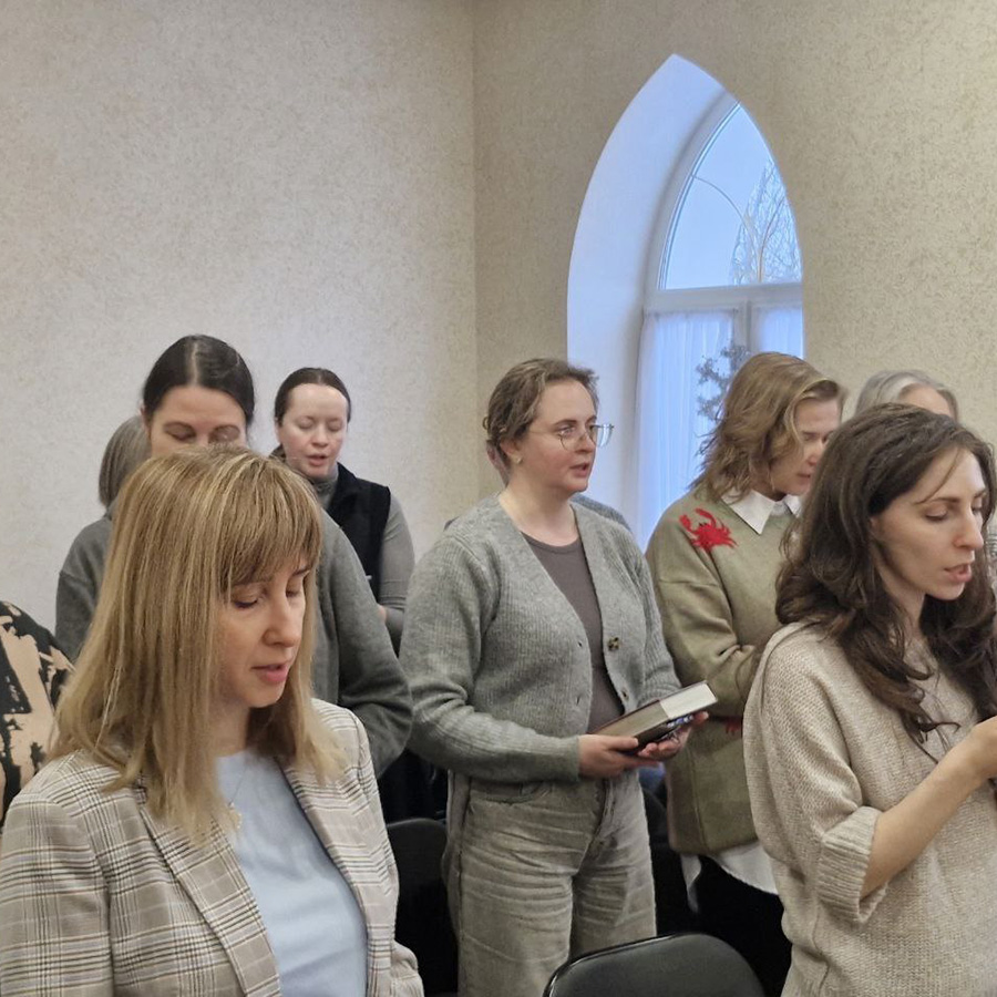 На введении в тему «Адвентских песен как молитвы бдения» участники размышляли о том, как песнопения сопровождают Литургию, помогают глубже войти в молитву, и как мы сами можем активнее участвовать в этом служении.