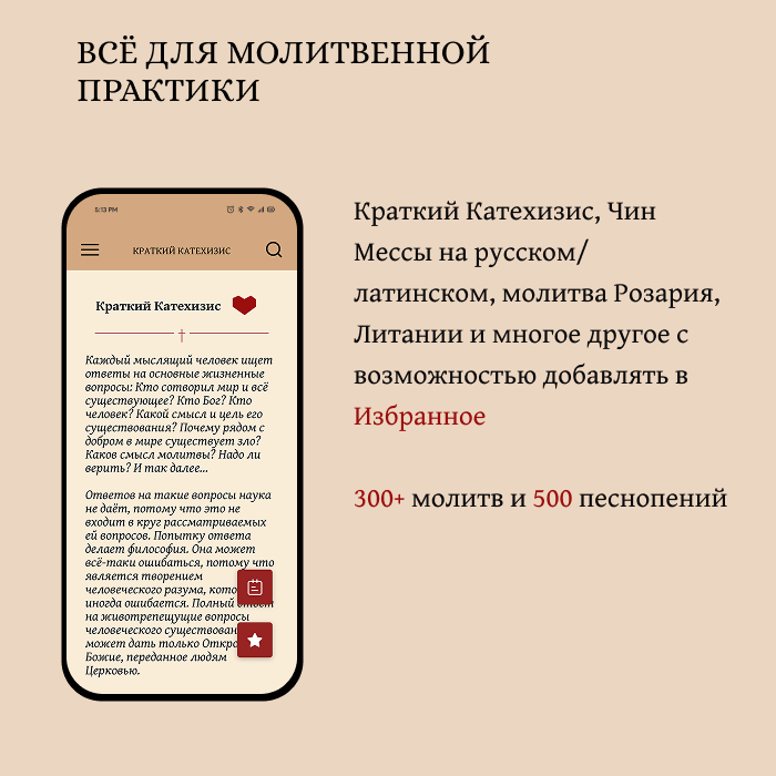Мобильное приложение с католическим молитвенником на русском языке, созданное командой волонтеров-разработчиков, одобрено Литургической комиссией Конференции католических епископов России.