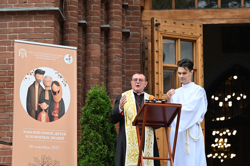 Перед общим благословением в завершение Святой Мессы Архиепископ Павел выразил благодарность всем организаторам, меценатам и участникам Юбилея семей, детей и пожилых людей.