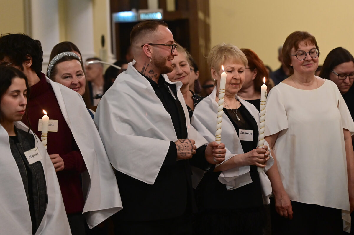Эта весть, это слово Воскресшего описывает то, что происходит в Крещении. Крещение — это больше, чем омовение или очищение. Это больше, чем вход в общину. Это новое рождение, новое начало жизни. Апостол Павел в отрывке из Послания к Римлянам говорит, что в Крещении мы таинственным образом «привиты» к подобию смерти Христовой. В Крещении мы отдаём себя Христу — и Он принимает нас в Себя, чтобы мы жили не для себя, но ради Него, с Ним и в Нём; чтобы мы могли жить с Ним и, таким образом, для других. В Крещении мы отдаём себя и свою жизнь в Его руки, чтобы мы могли сказать вместе со святым Павлом: «уже не я живу, но живёт во мне Христос. А что ныне живу во плоти, то живу верою в Сына Божия, возлюбившего меня и предавшего Себя за меня» (Гал 2,20) и «для меня жизнь — Христос, и смерть — приобретение. Если я умру с Ним — это приобретение для меня. Если же я продолжу жить, то смогу продолжать приносить плод. Поэтому — говорит Павел — мне приходится выбирать: либо освободиться — то есть умереть, быть казнённым — чтобы быть со Христом, и лично для меня это было бы лучше; но я понимаю, что ещё важнее оставаться в этой жизни ради вас» (ср. Фил. 1,21–23). Павел осознаёт, что между этой жизнью и потусторонней жизнью больше нет существенной разницы, потому что, «живём ли мы или умираем, мы принадлежим Господу» (ср. Рим. 14,7).