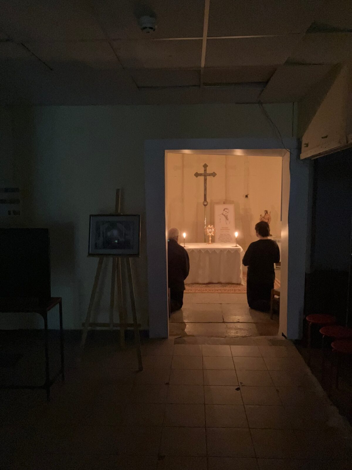 Но еще в не подключенном к коммуникациям здании, в историческом пространстве алтаря, прошла первая Святая Месса — в здание вернулась молитва. Один раз в неделю служится Святая Месса, проходит Адорация, проходят молитвенные встречи.