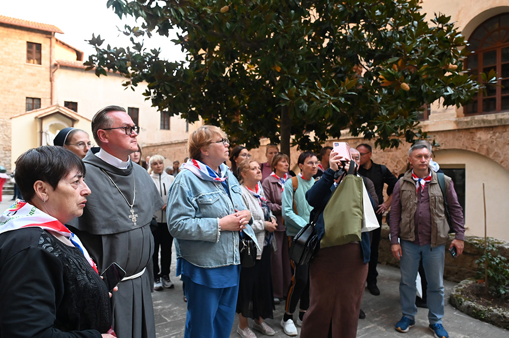 Затем паломники отправились в один из 13 монастырей и единственный сохранившийся до настоящего времени монастырь, основанный св. Бенедиктом. Здесь они посетили пещеру, в которой св. Бенедикт провел три года, стараясь переосмыслить свою монашескую жизнь. Результатом этих размышлений стал девиз «Ora et Labora» («Молись и трудись»), который стал основой монашеского устава и центром духовной жизни основанного им Ордена бенедиктинцев, которые в своей своей жизни сочетают духовную молитву и физический труд.