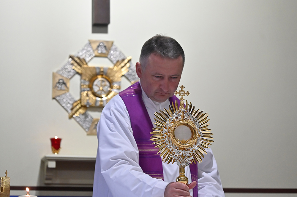 Юбилей начался с покаянного богослужения и Адорации в Часовне Пресвятых Даров. Это с самого начала обозначило направленность всего мероприятия.